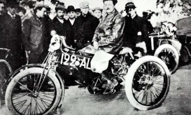 صورة تعود لعام 1906 لأحد المشاركين في سباق أريون على حلبة أردينيه.